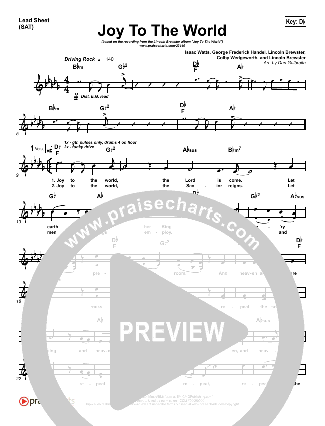 Joy To The World Sheet Music Pdf Lincoln Brewster Praisecharts
